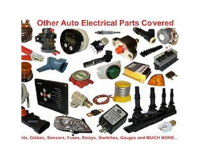 Comprehensive range of electrical accessories covering everything from complete lighting assemblies, cable switches, gauges, electrical consumables, fuses, globes.